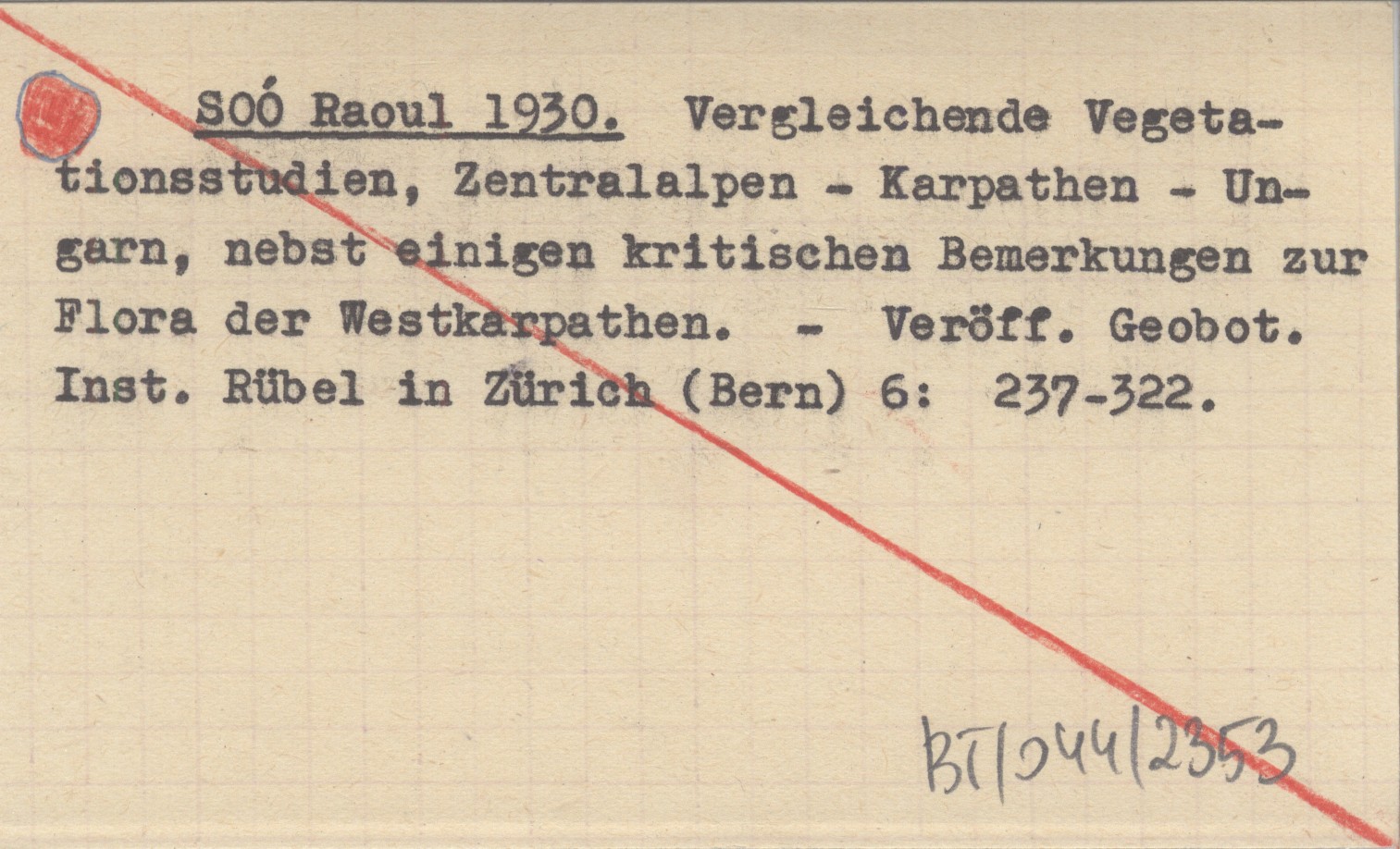SOÓ Raoul 1930 Vergleichende Vegetationsstudien, Zentralalpen-Karpathen-Ungarn, nebst einigen kritischen Bemerkungen zur Flora der Westkarpathen.