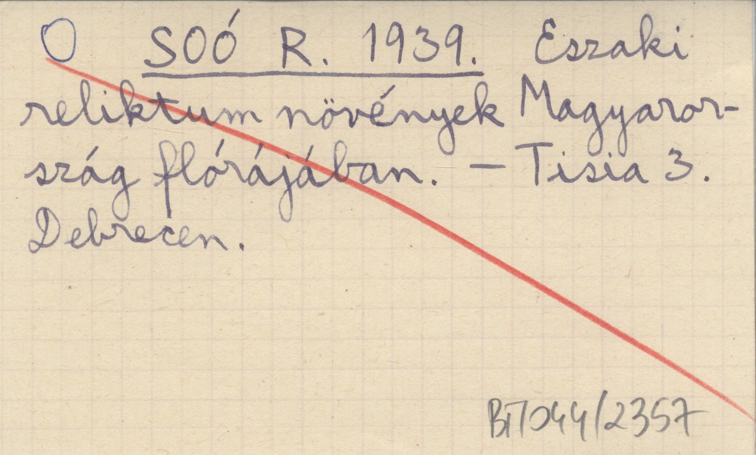 SOÓ R. 1939 Eszaki reliktum növények Magyarország flórájában.