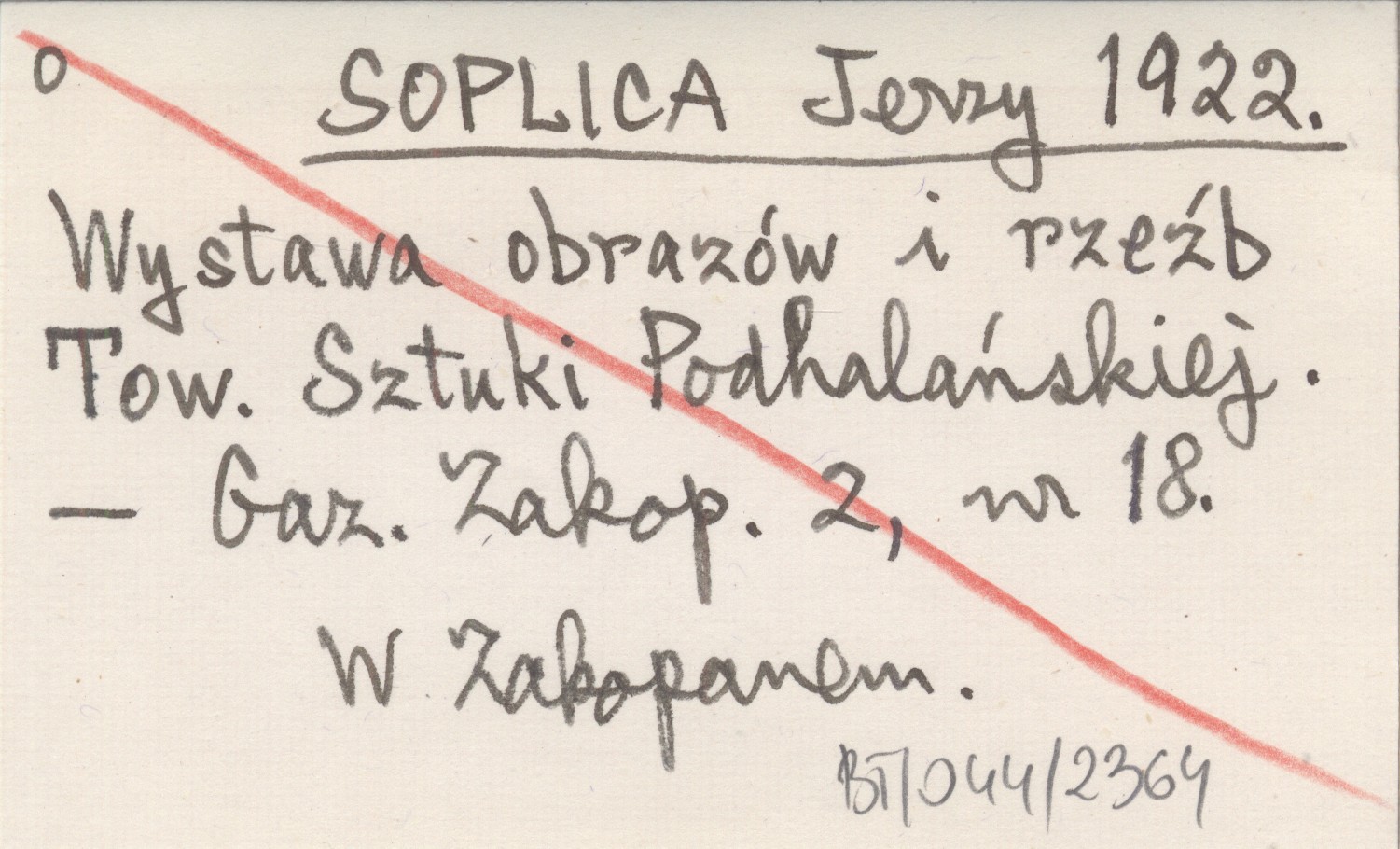 SOPLICA Jerzy 1922 Wystawa obrazów i rzeźb Tow. Sztuki Podhalańskiej.