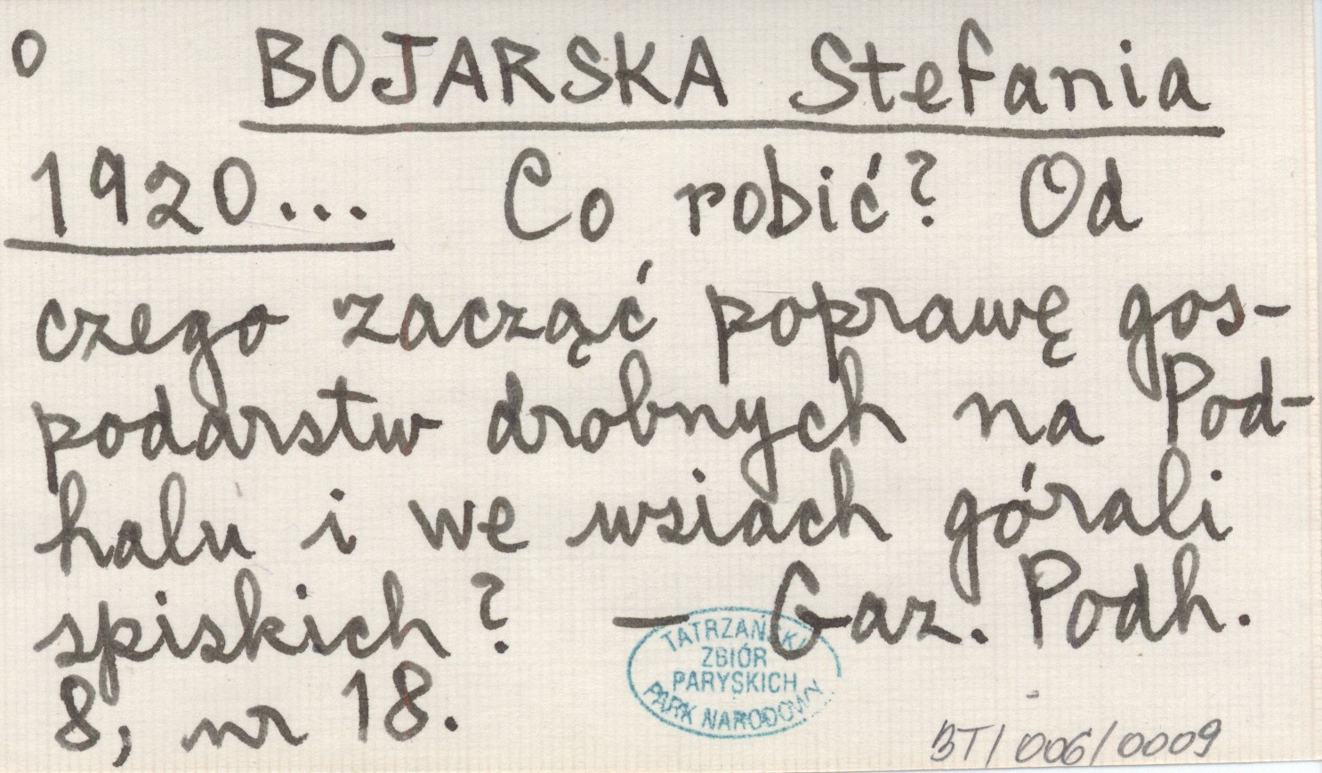 BOJARSKA Stefania 1920... Co robić? Od czego zacząć poprawę gospodarstw drobnych na Podhalu i we wsiach górali spiskich?