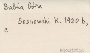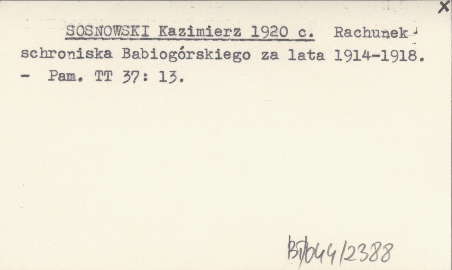 SOSNOWSKI Kazimierz 1920 c Rachunek schroniska Babiogórskiego za lata 1914-1918.