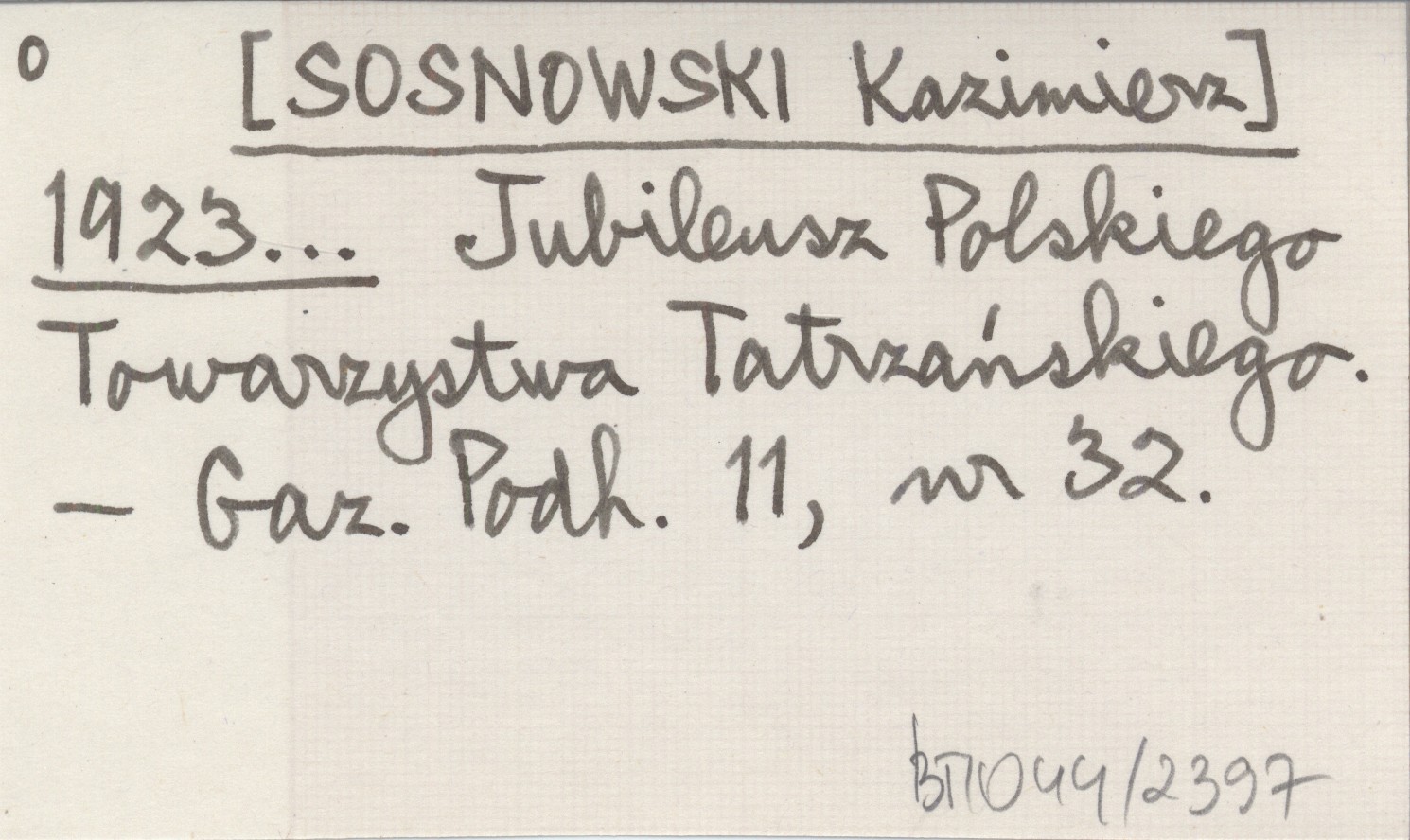 [SOSNOWSKI Kazimierz] 1923... Jubileusz Polskiego Towarzystwa Tatrzańskiego.