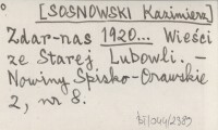 Zdar-nas [SOSNOWSKI Kazimierz] 1920... Wieści ze Starej Lubowli.