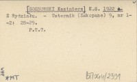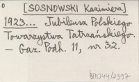 K. S. [SOSNOWSKI Kazimierz] 1922 d Z Oddziału "Beskid" [PTT] w Nowym Sączu.