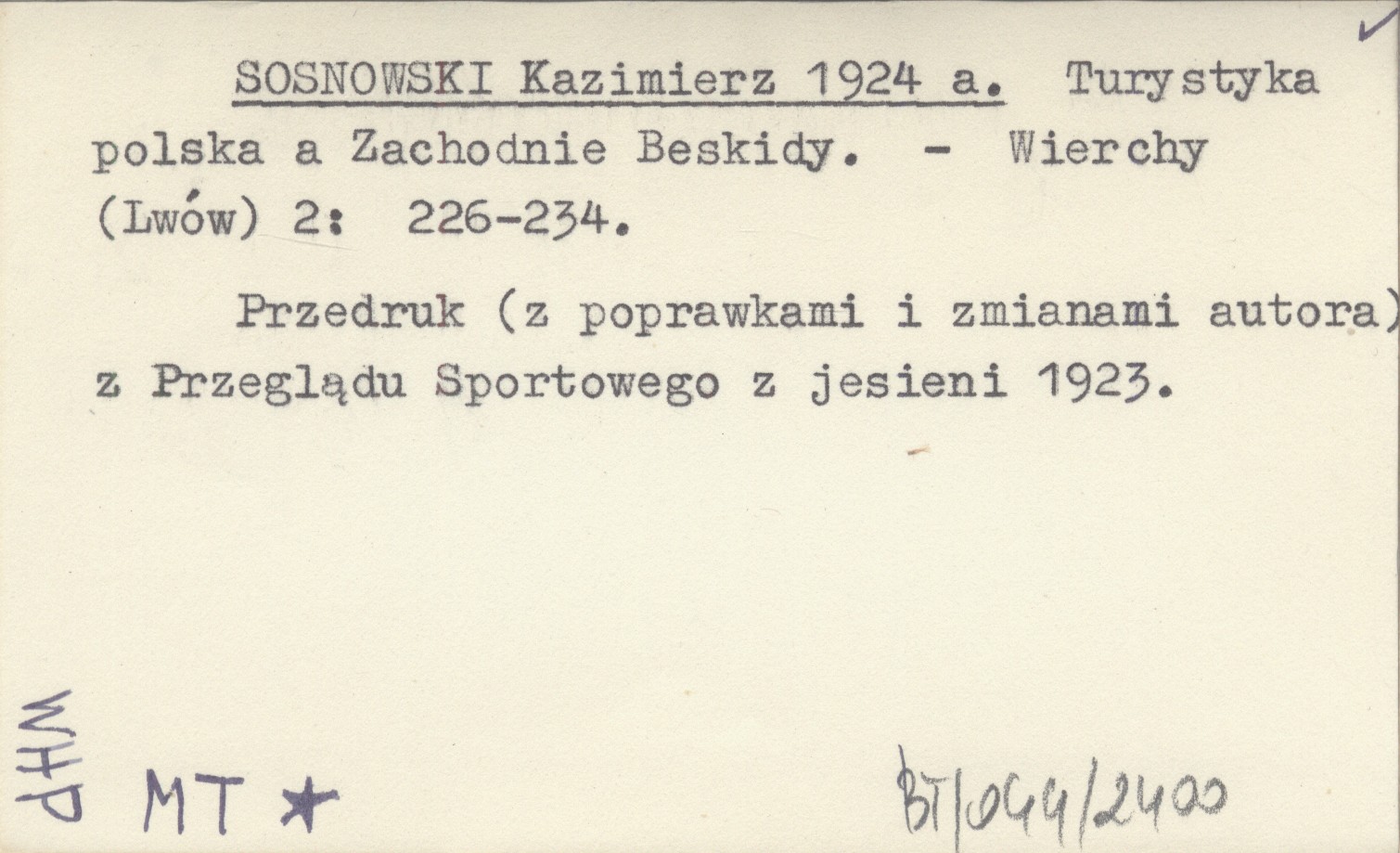 SOSNOWSKI Kazimierz 1924 a Turystyka polska a Zachodnie Beskidy.