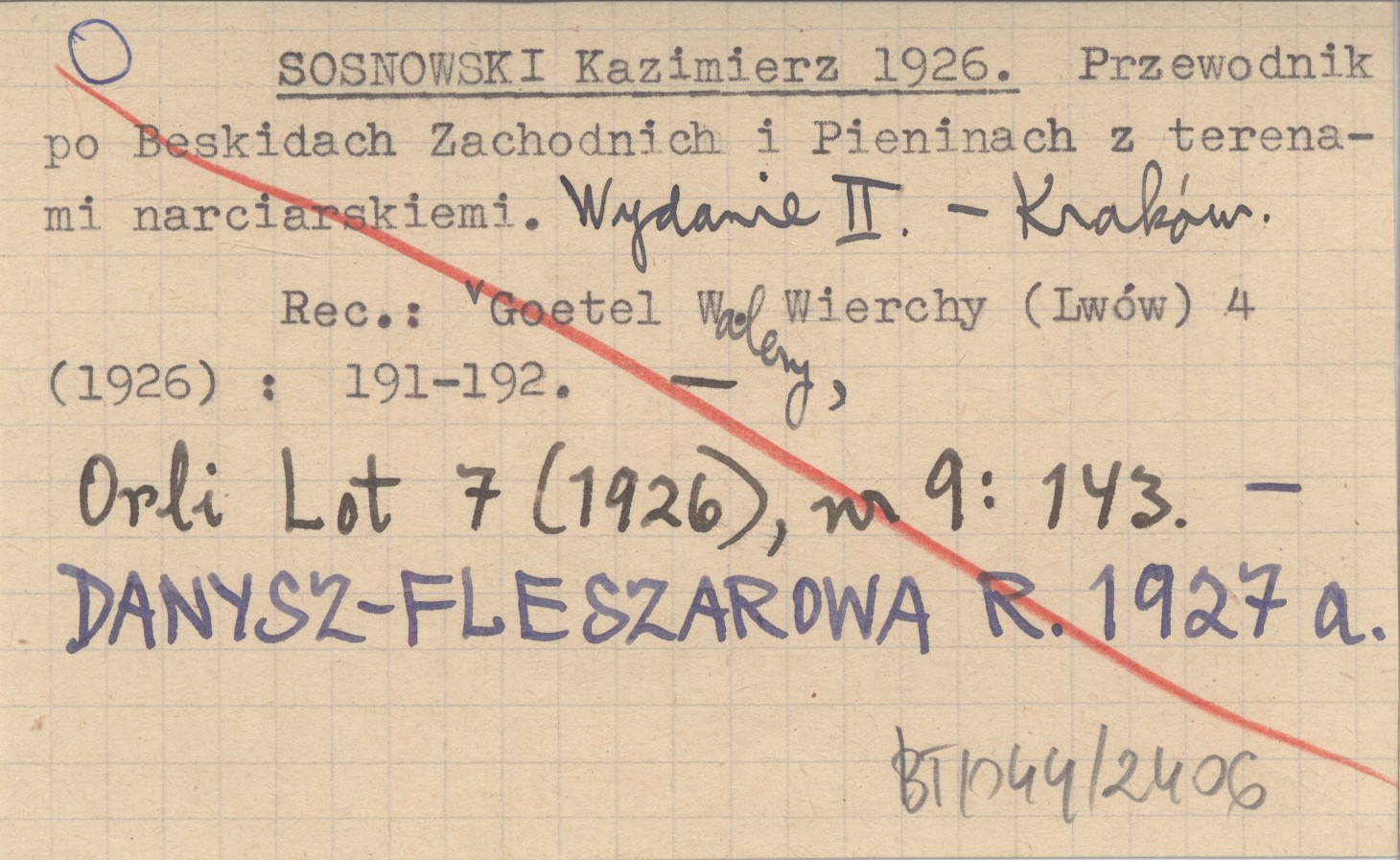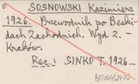 WYD: 2 Kraków , REC: GOETEL Walery, Wierchy (Lwów) 4 (1926): 191-192 ; Orli Lot 7 (1926), nr 9: 143 ; DANYSZ-FLESZAROWA R. 1927 a ; SINKO T. 1926... ;
