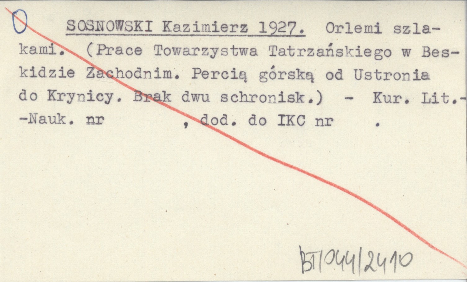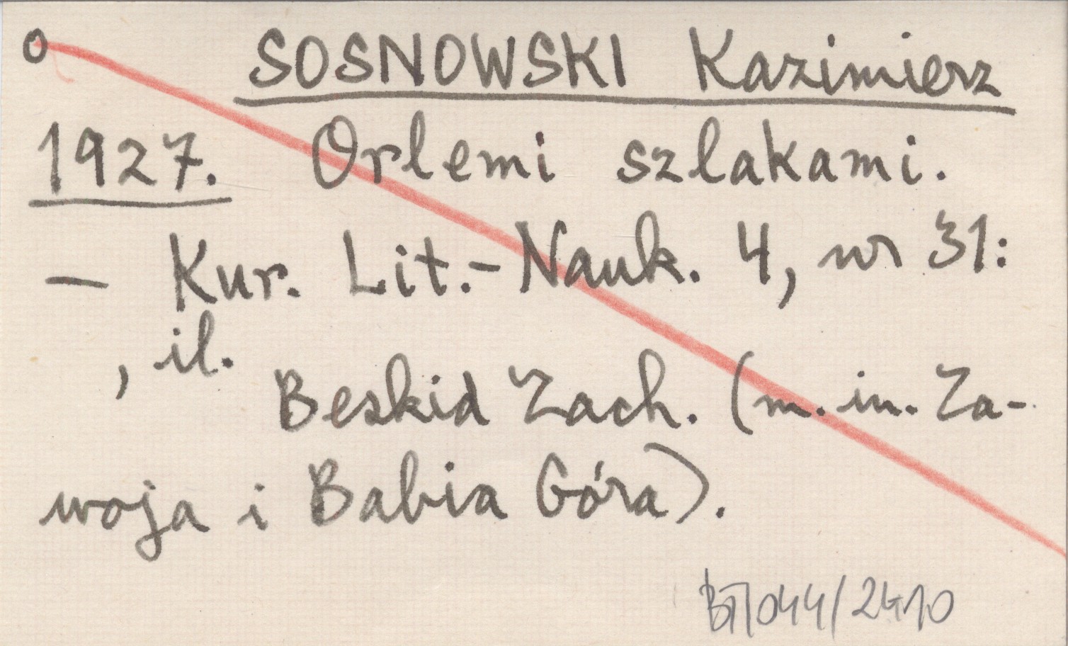 SOSNOWSKI Kazimierz 1927 Orlemi szlakami. (Prace Towarzystwa Tatrzańskiego w Beskidzie Zachodnim. Percią górską od Ustronia do Krynicy. Brak dwu schronisk).