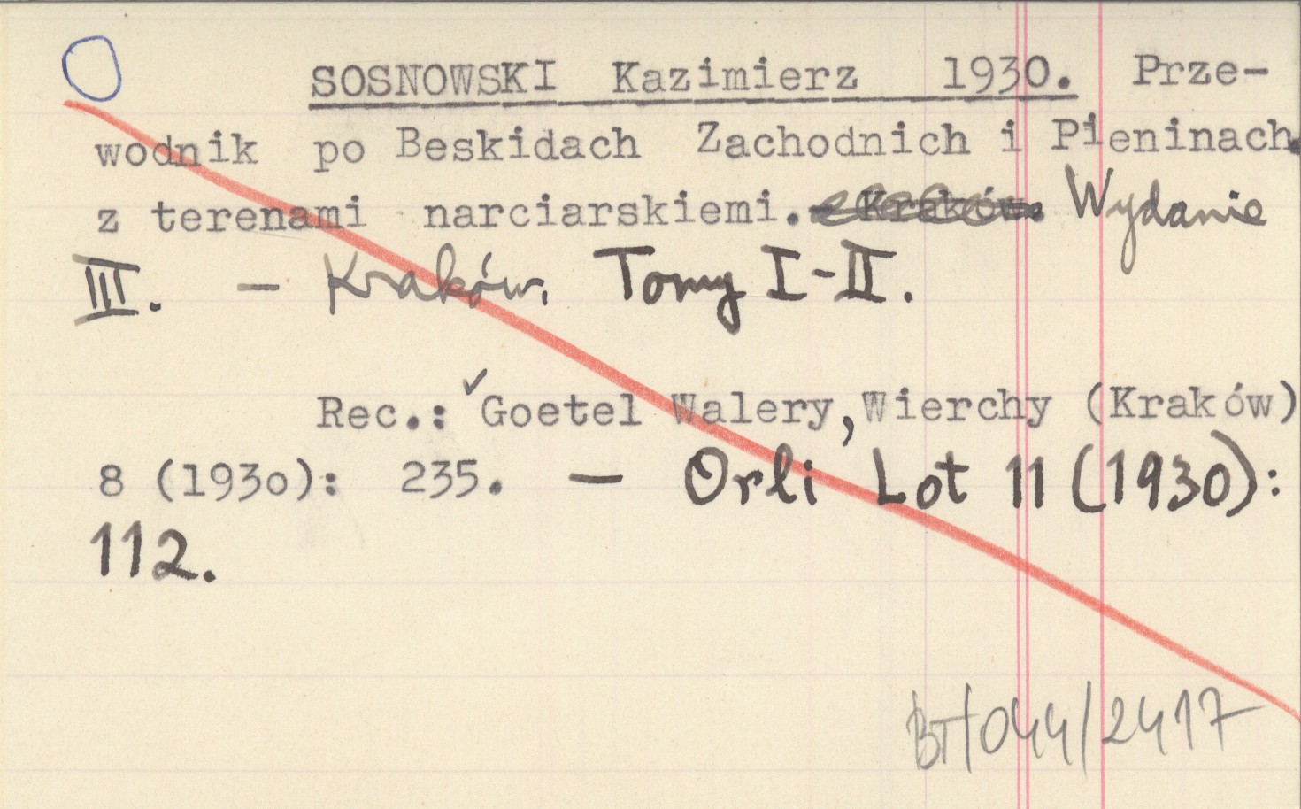 WYD: 3 Kraków , T. I-II. REC: GOETEL Walery, Wierchy (Kraków) 8 (1930): 235 ; Orli Lot 11 (1930): 112 ;