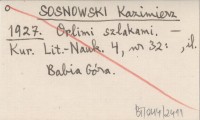 SOSNOWSKI Kazimierz 1927 Orlemi szlakami. (Prace Towarzystwa Tatrzańskiego w Beskidzie Zachodnim. Percią górską od Ustronia do Krynicy. Brak dwu schronisk).