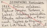 SOSNOWSKI Kazimierz 1927 Orlimi szlakami.