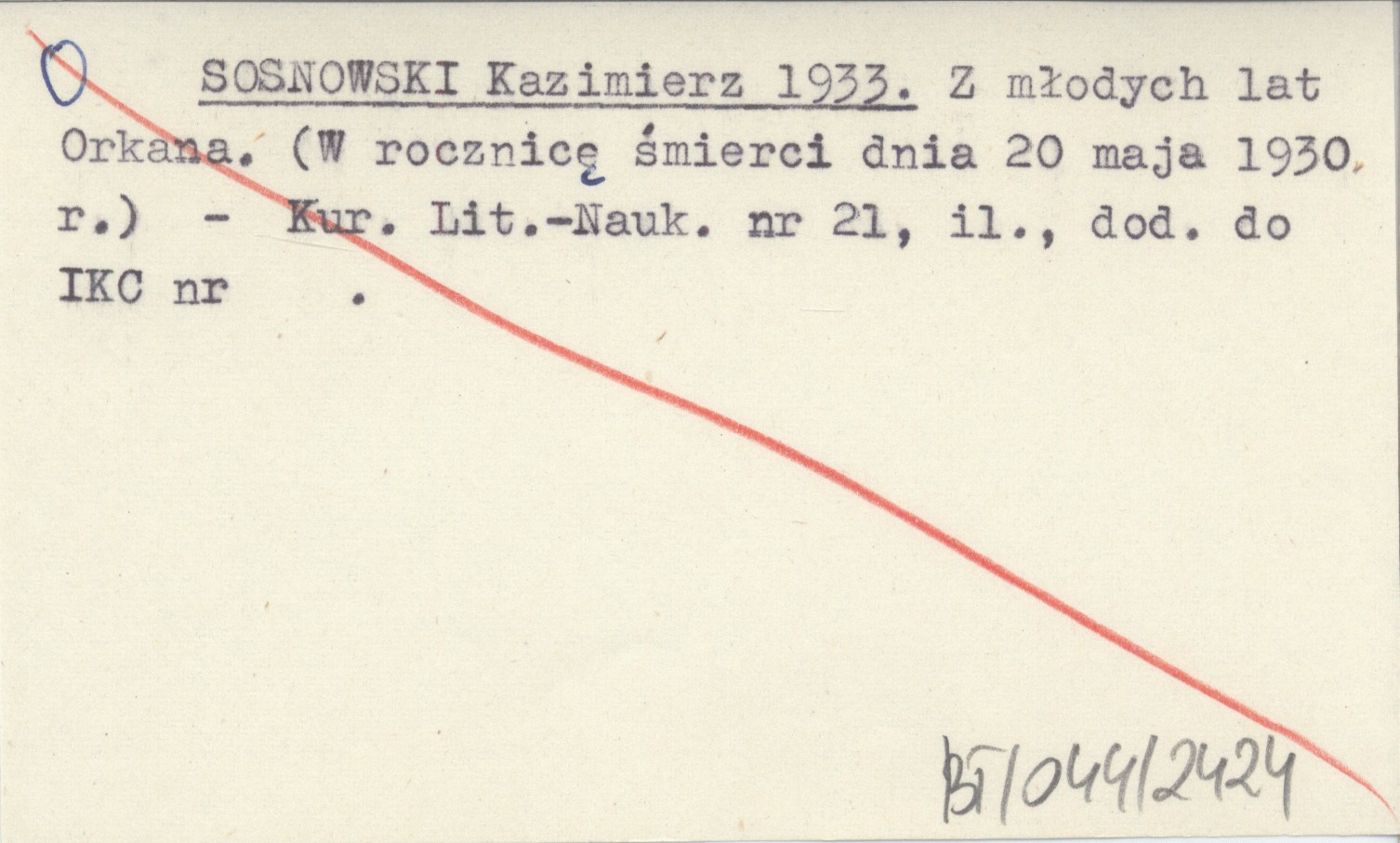 SOSNOWSKI Kazimierz 1933 Z młodych lat Orkana. (W rocznicę śmierci dnia 20 maja 1930 r.).