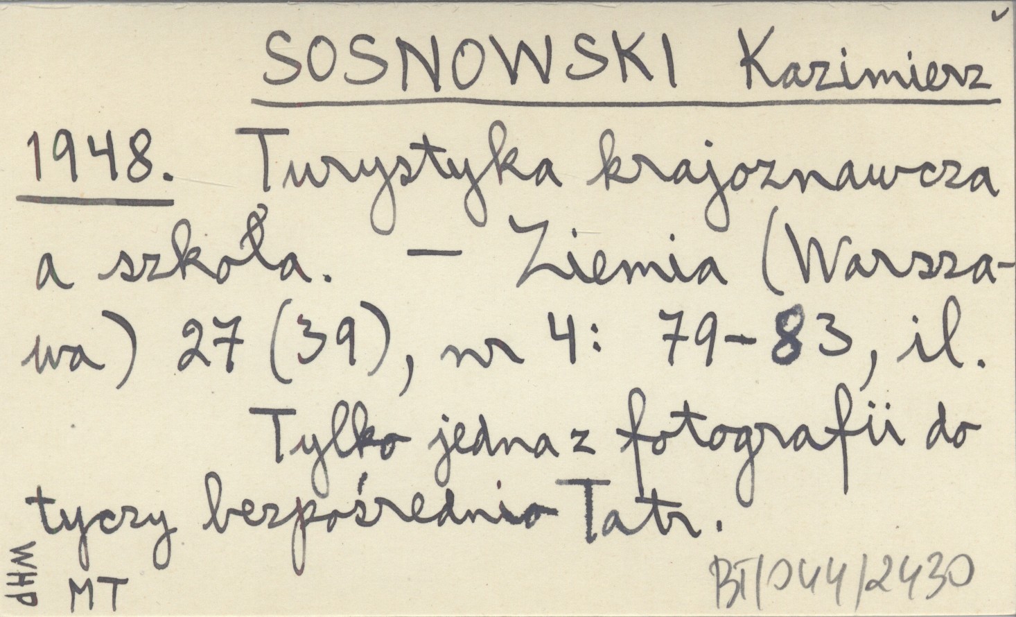 SOSNOWSKI Kazimierz 1948 Turystyka krajoznawcza a szkoła.