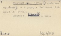 SOSNOWSKI Oskar 1931 [O stylu zakopiańskim.]