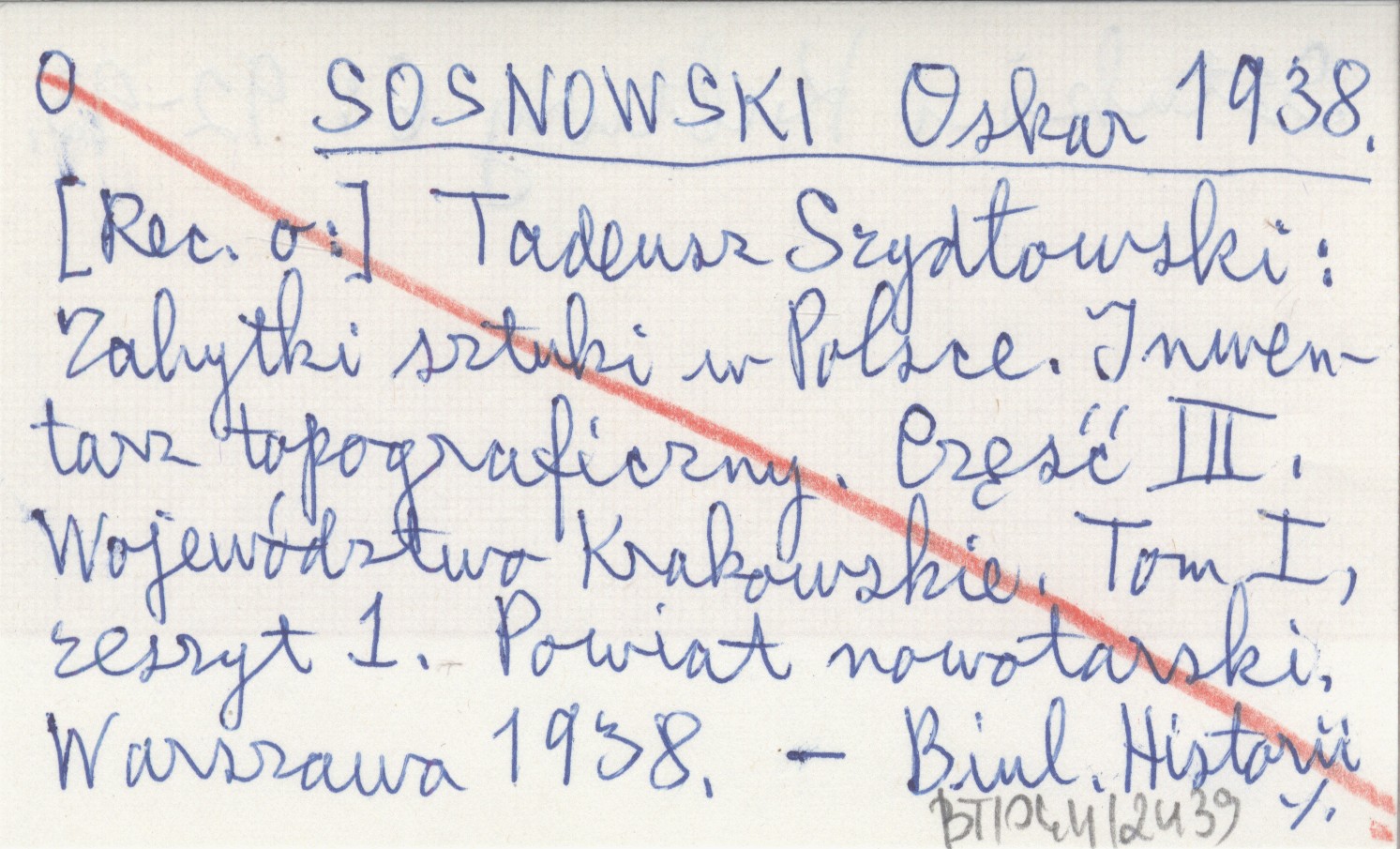 SOSNOWSKI Oskar 1938 [Rec. o:] Tadeusz Szydłowski: Zabytki sztuki w Polsce. Inwentarz topograficzny. Część III. Województwo Krakowskie. Tom I, zeszyt 1. Powiat nowotarski. Warszawa 1938.