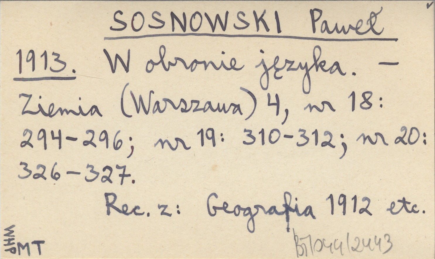 Ziemia (Warszawa) , 4, nr 18: 294-296 ; nr 19: 310-312 ; nr 20: 326-327. Recenzja z: Geografia 1912 etc.