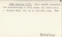 SOWA Andrzej 1977 Rola zamków województwa krakowskiego w XVII wieku (do 1660 roku).