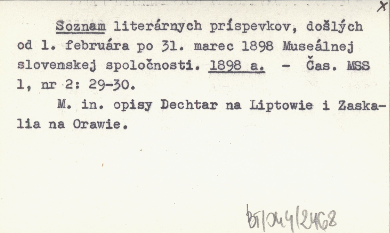 Soznam literárnych príspevok, došlých od 1. februára po 31. marec 1898 Museálnej slovenskej spoločnosti. 1898 a