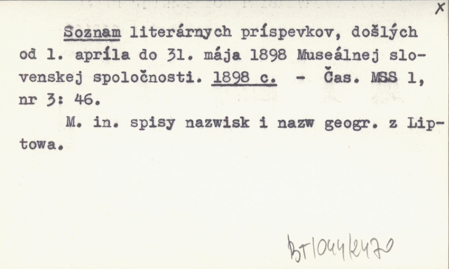 Soznam literárnych príspevok, doąlých od 1. apríla do 31. mája 1898 Museálnej slovenskej spoločnosti. 1898 c