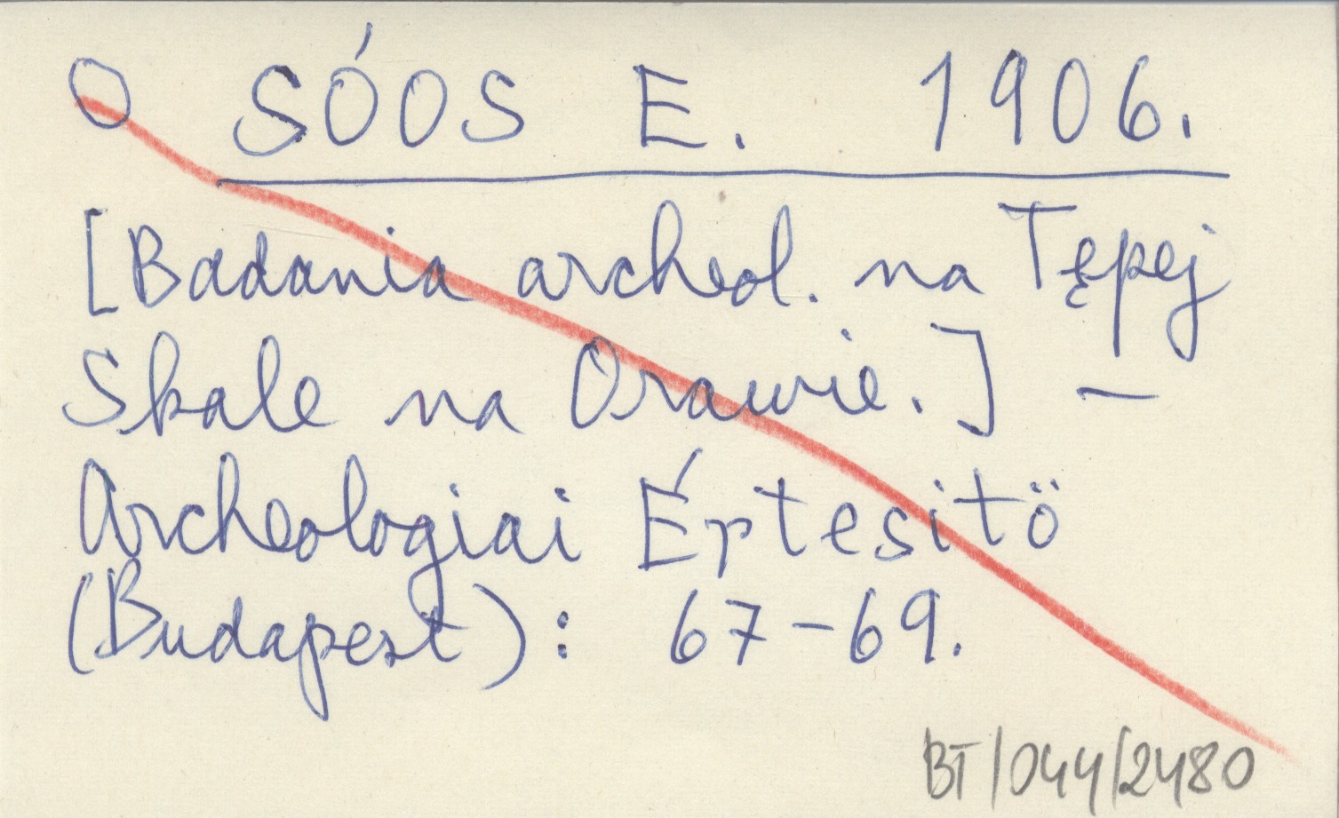 SÓOS E. 1906 [Badania archeologiczne na Tępej Skale na Orawie.]