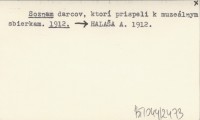 Soznam darcov, ktorí prispeli k muzeálnym sbierkam. 1912