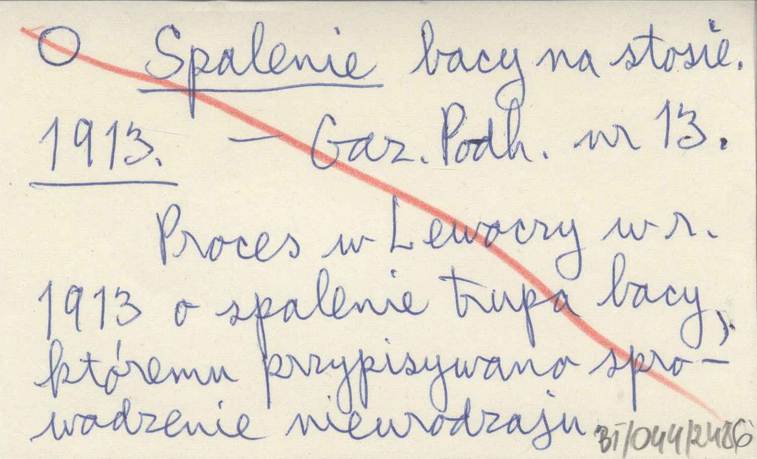 Gazeta Podhalańska, 1, nr 13. Proces w Lewoczy w r. 1913 o spalenie trupa bacy, któremu przypisywano sprowadzenie nieurodzaju.