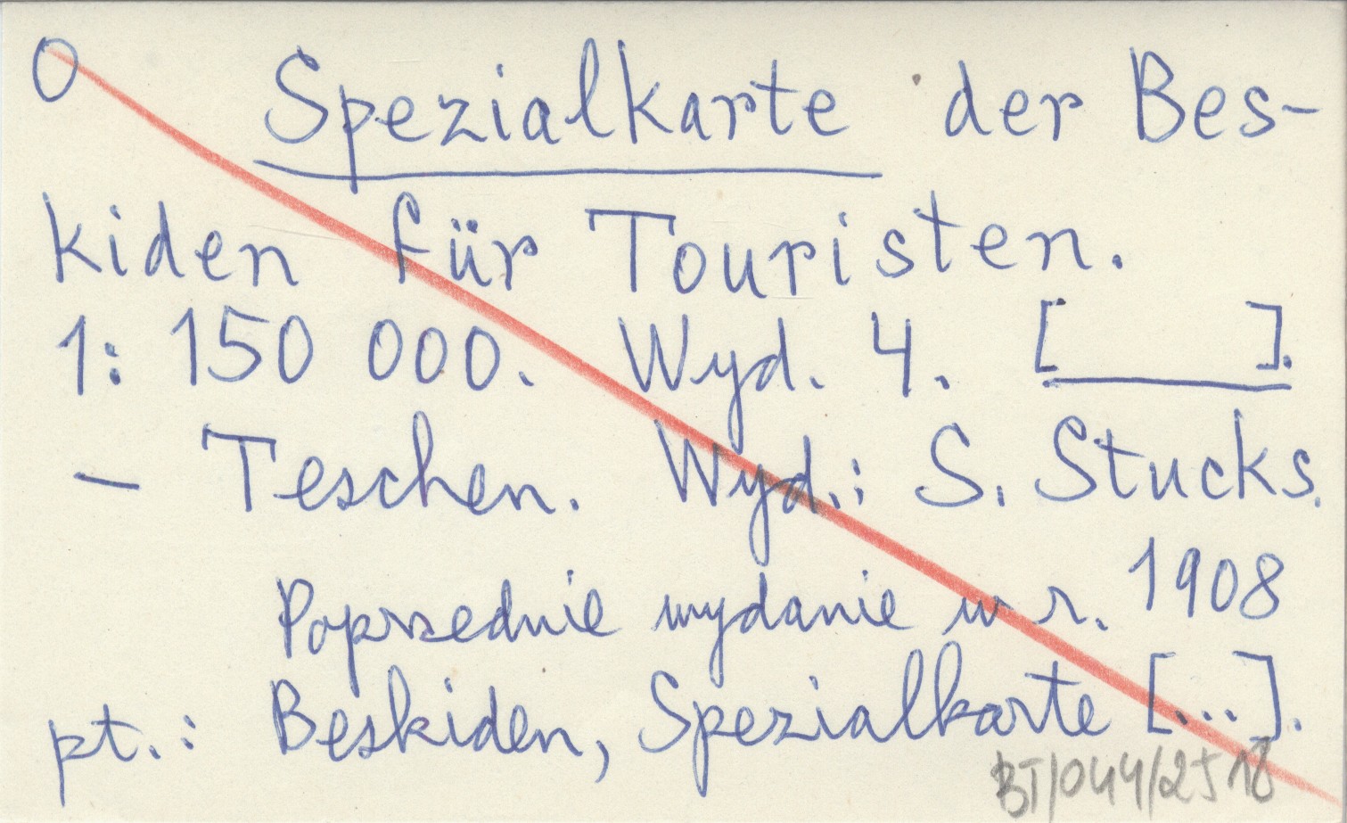 WYD: 4 S. Stucks, Teschen , Poprzednie wydanie w r. 1908 pt. "Beskiden, Spezialkarte [...].