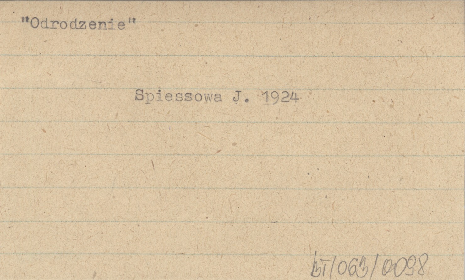 SPIESSOWA Janina 1924 Tow. Domów Zdrowia Młodz. katol. "Odrodzenie" w Zakopanem pod protektor. Polskiego Czerwonego Krzyża.