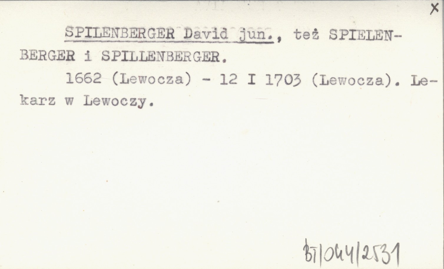 Też SPIELENBERGER i SPILLENBERGER. 1662 (Lewocza)-12 I 1703 (Lewocza). Lekarz w Lewoczy.