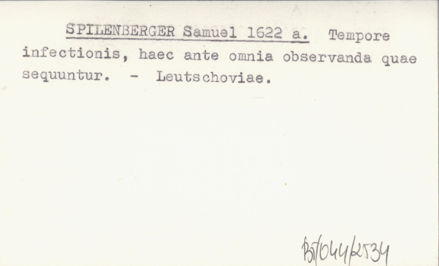 SPILENBERGER Samuel 1622 a Tempore infectionis, haec ante omnia observande quae sequuntur.