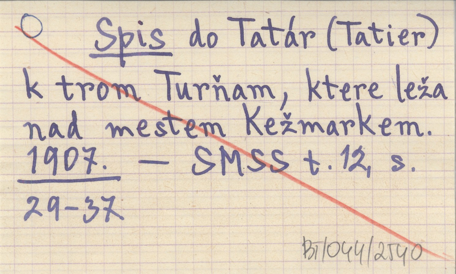 Spis do Tatár (Tatier) k trom Turňam, ktere leža nad mestem Kežmarkem. 1907