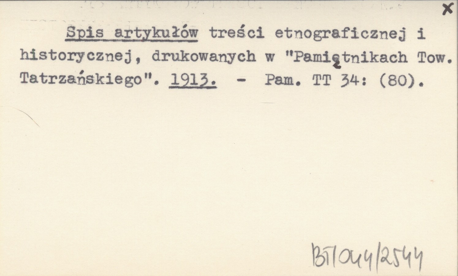 Spis artykułów treści etnograficznej i historycznej, drukowanych w "Pamiętnikach Tow. Tatrzańskiego". 1913