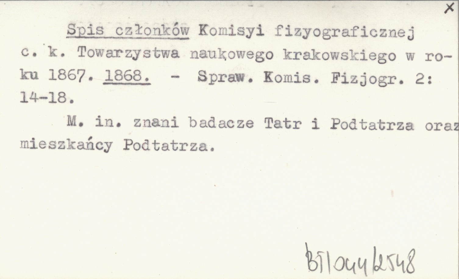Spis członków Komisyi fizyograficznej c.k. Towarzystwa naukowego krakowskiego w roku 1867. 1868