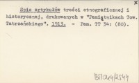 Spis artykułów treści etnograficznej i historycznej, drukowanych w "Pamiętnikach Tow. Tatrzańskiego". 1913
