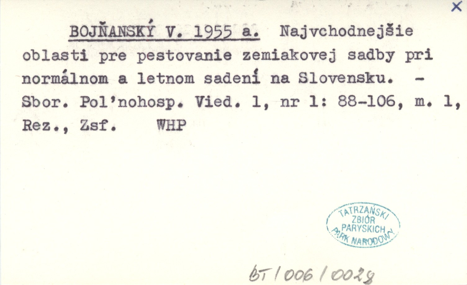 Sborník Po”nohospodárskęch Vied, 1, nr 1: 88-106, 1 mapa, Rez., Zsf.