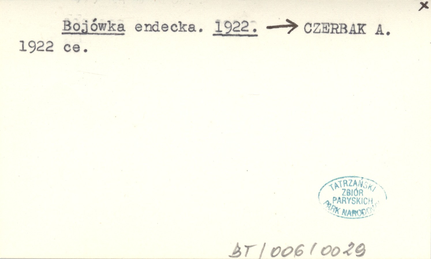 CZERBAK A. 1922 ce