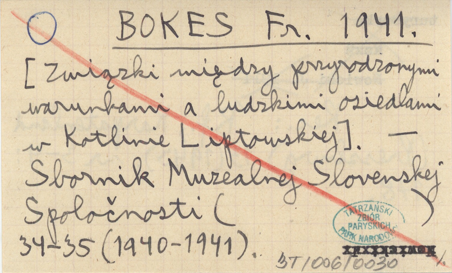 BOKES Fr. 1941 [Związki między przyrodzonymi warunkami a ludzkimi osiedlami w Kotlinie Liptowskiej].