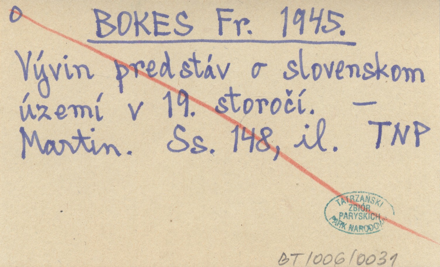 BOKES Fr. 1945 Vývin predstáv o slovenskom území v 19. storočí.