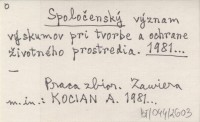 Spoločenský význam výskumov pri tvorbe a ochrane životného prostredia. 1981...