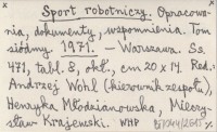 RED: WOHL, Andrzej. ; MŁODZIANOWSKA, Henryka. ; KRAJEWSKI, Mieczysław. ; Sport robotniczy. Opracowania, dokumenty, wspomnienia. Tom siódmy. 1971