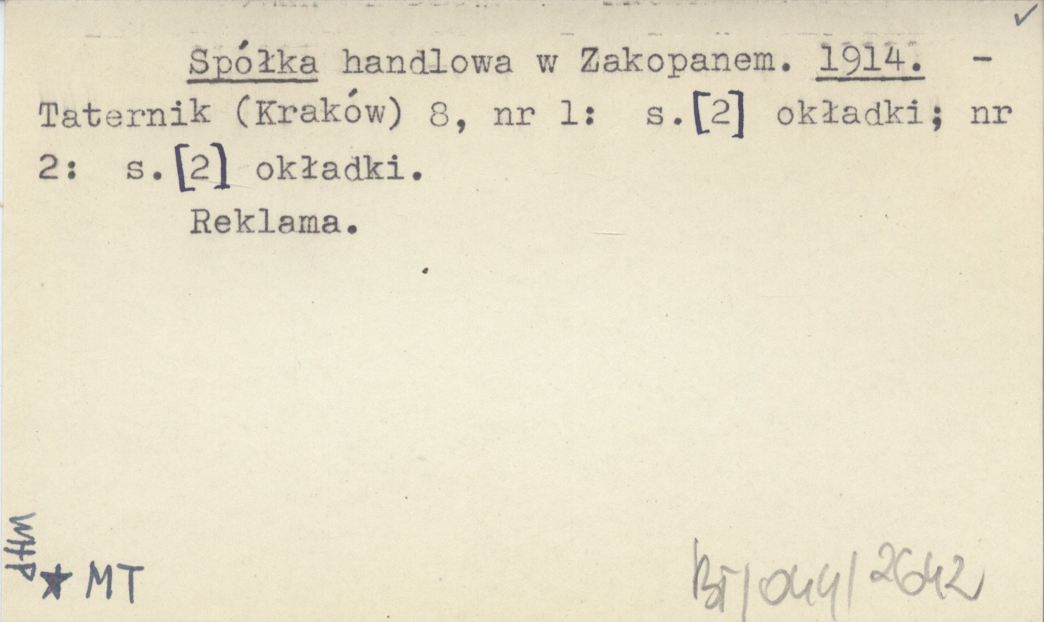 Taternik (Kraków) , 8, nr 1: [2] ; nr 2: [2]. Reklama.