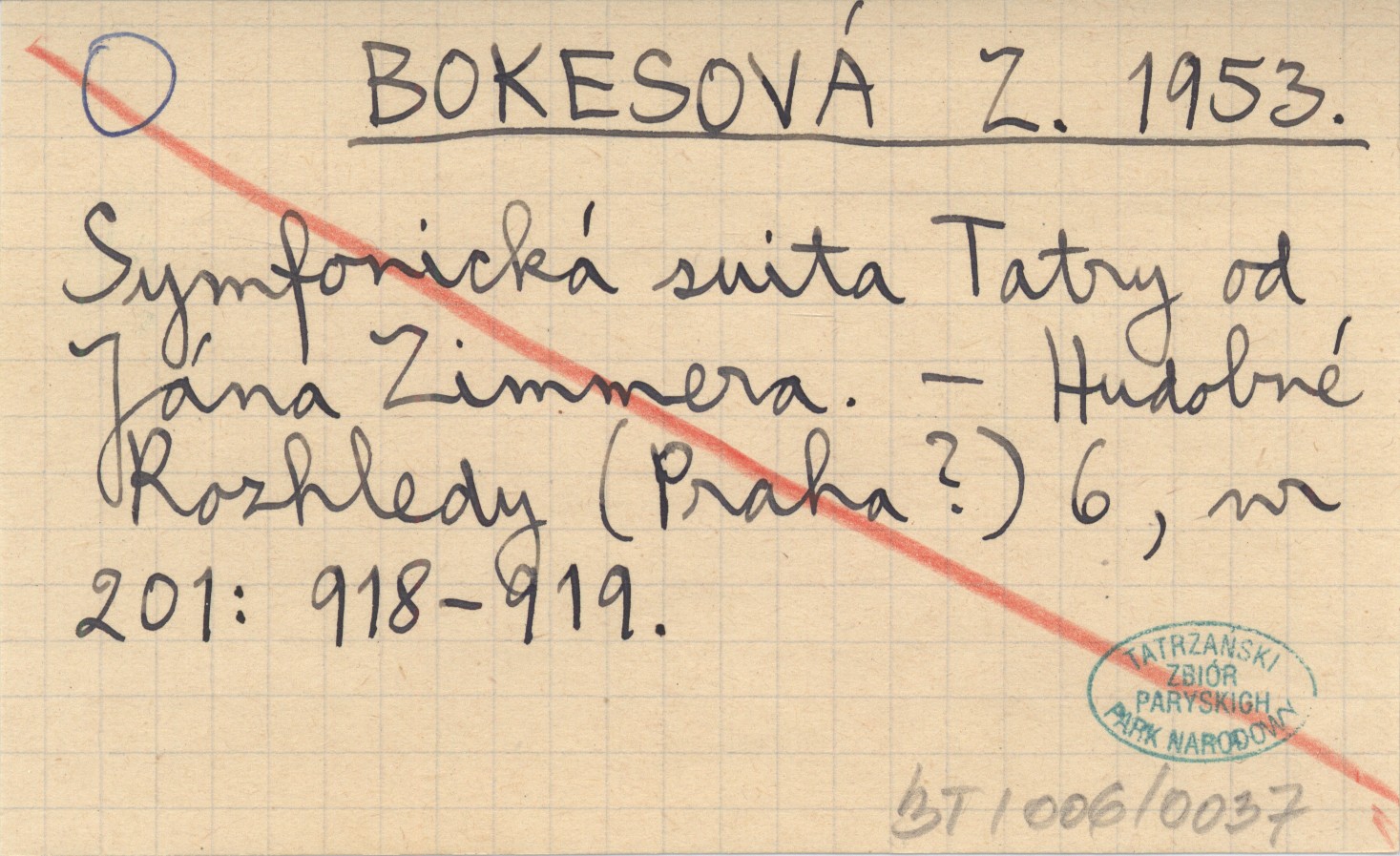 BOKESOVÁ Z. 1953 Symfonická suita Tatry od Jána Zimmera.