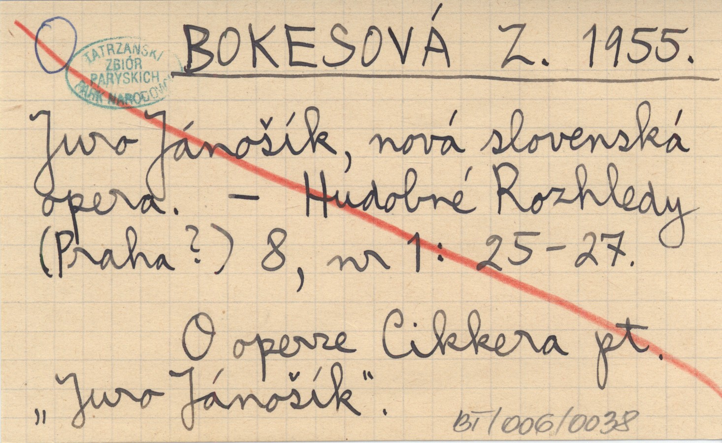 BOKESOVÁ Z. 1955 Juro Jánošík, nová slovenská opera.