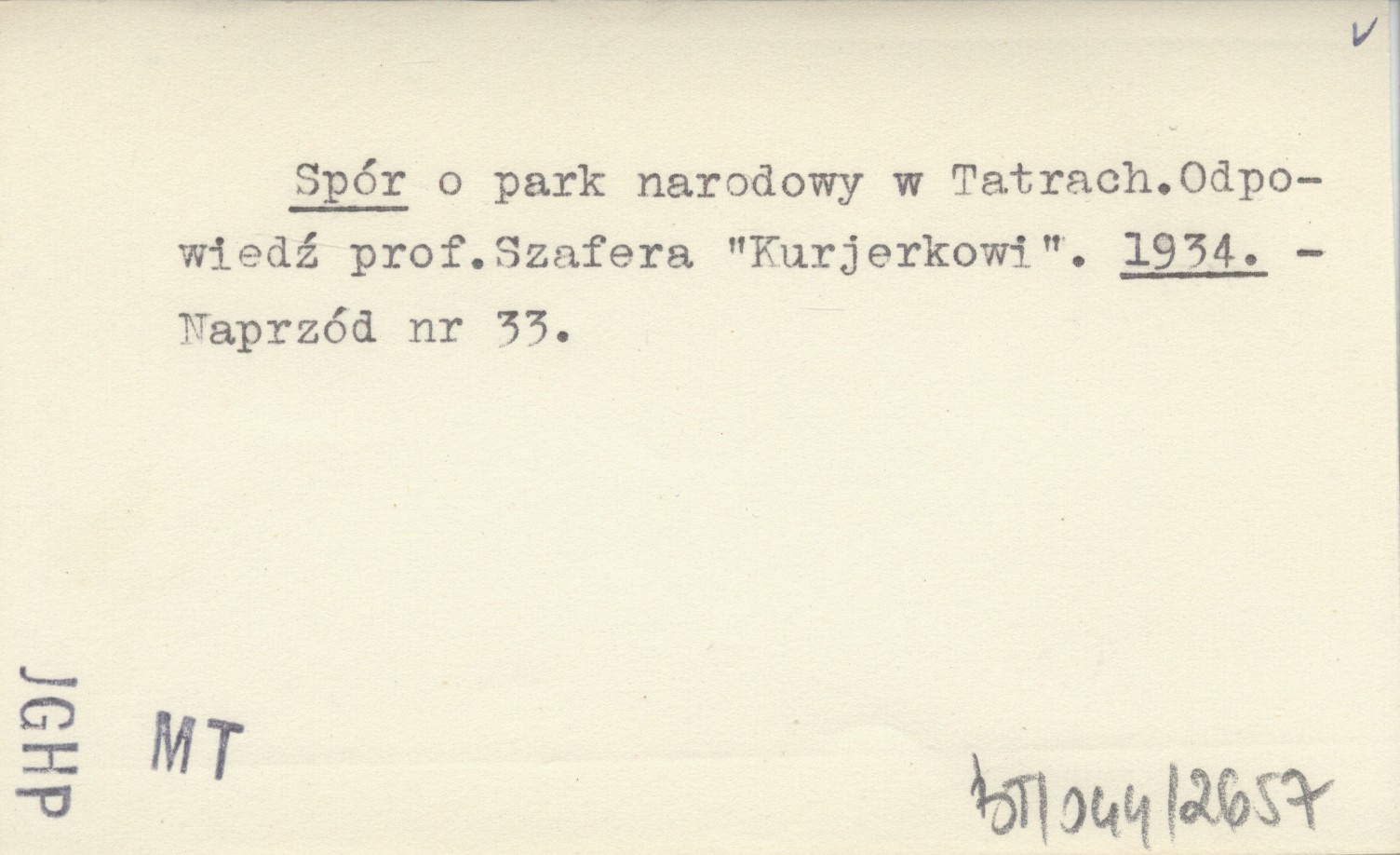 Spór o park narodowy w Tatrach. Odpowiedź prof. Szafera "Kurjerkowi". 1934