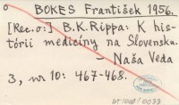 BOKES František 1956 B. K. Rippa: K histórii medicíny na Slovensku.