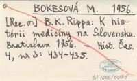 BOKESOVÁ M. 1956 B. K. Rippa: K histórii medicíny na Slovensku. Bratislava 1956.