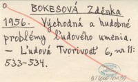 BOKESOVÁ Zděnka 1956 Východná a hudobné problémy ľudového umenia.
