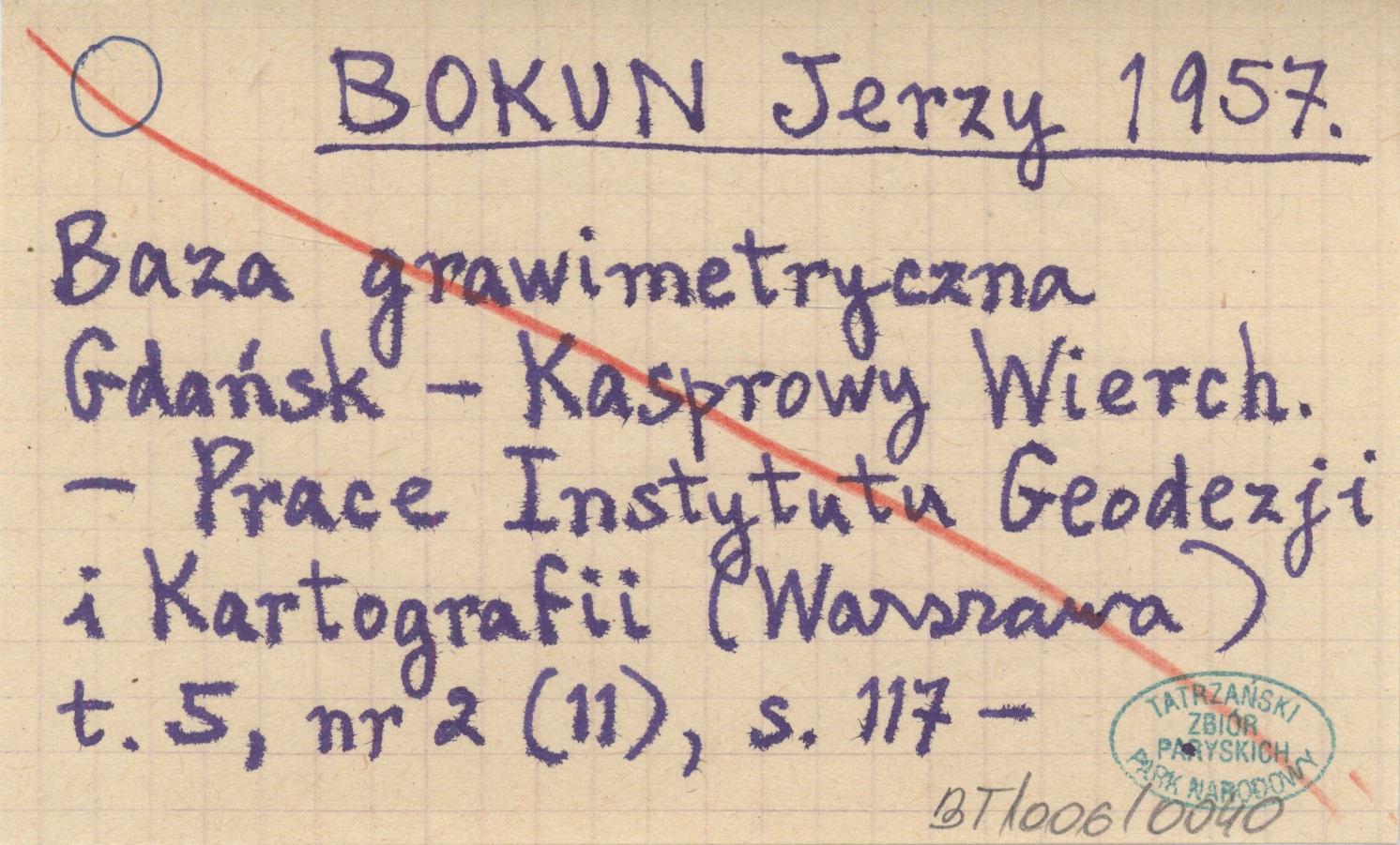 BOKUN Jerzy 1957 Baza grawimetryczna Gdańsk - Kasprowy Wierch.