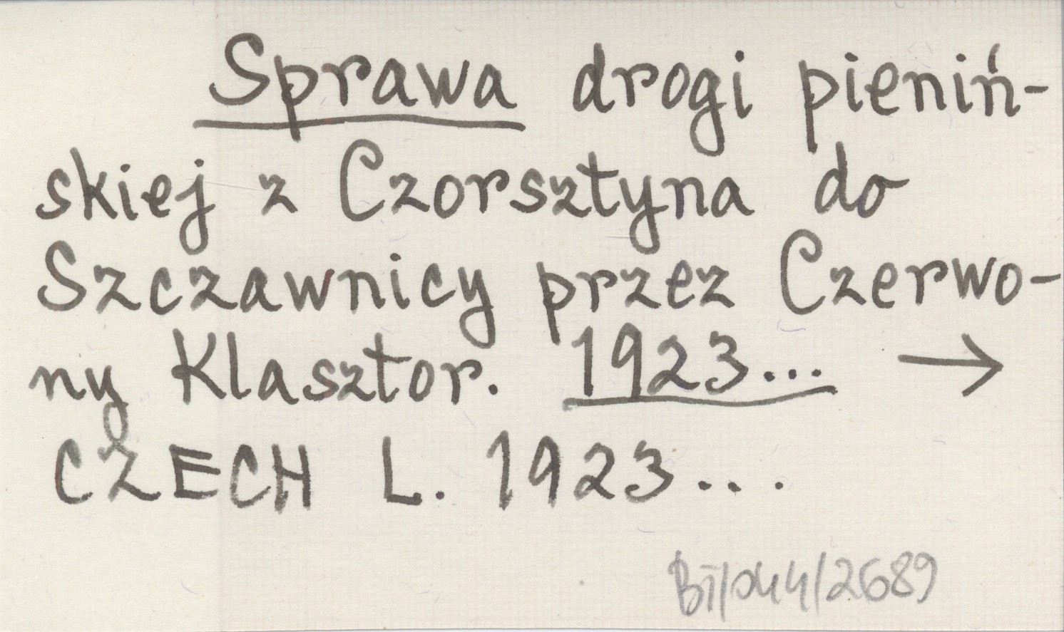 Sprawa drogi pienińskiej z Czorsztyna do Szczawnicy przez Czerwony Klasztor. 1923...