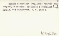 Sprawa rezerwatów (względnie "Parków Narodowych") w Tatrach, Pieninach i Beskidach [...]. 1925 a