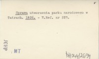 Sprawa utworzenia parku narodowego w Tatrach. 1926